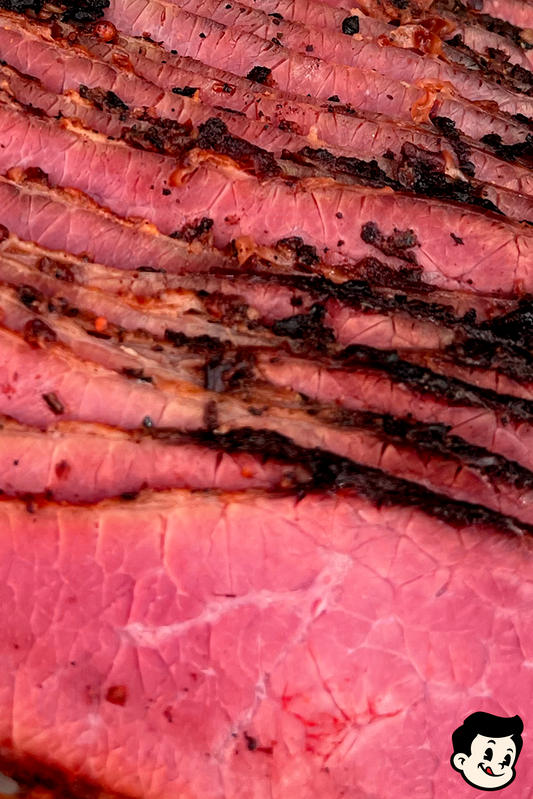 Chez nous, le pastrami, c'est du fait maison. On choisit le meilleur bœuf 100% Irish Black Angus et on lui donne une touche spéciale avec nos épices maison. C'est pas juste de la viande, c'est une fête pour les papilles. Venez goûter, on vous promet du bonheur entre chaque tranche!